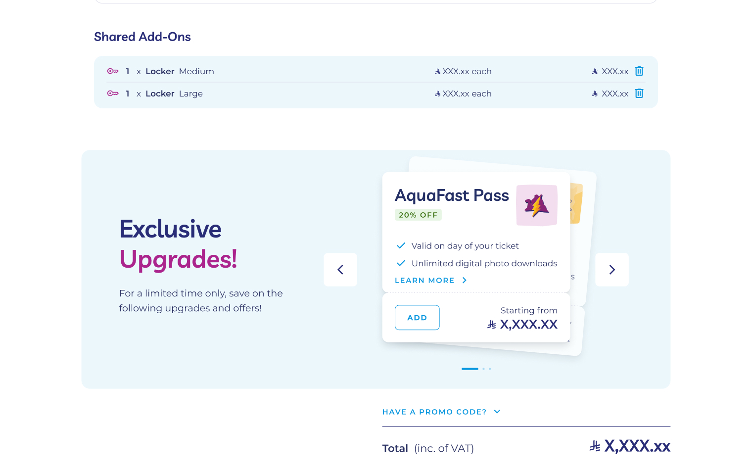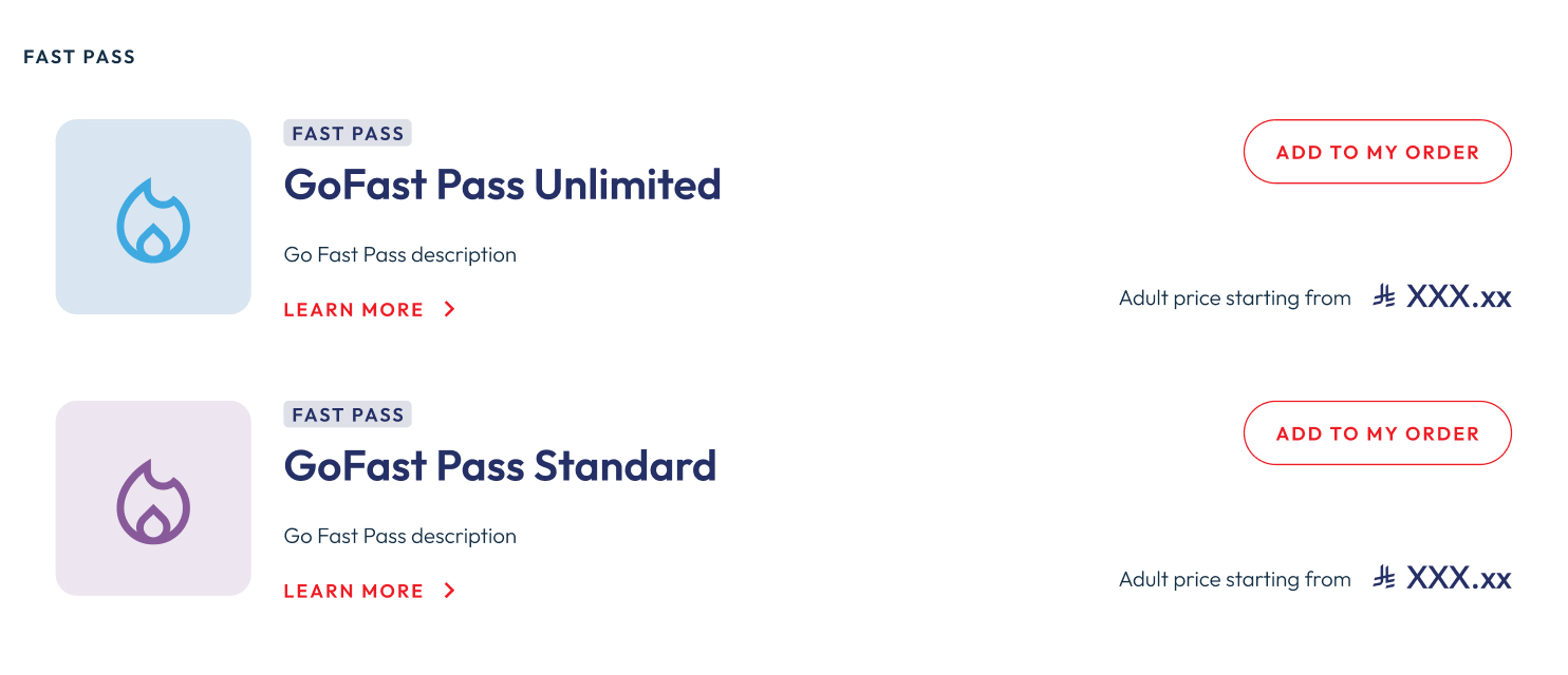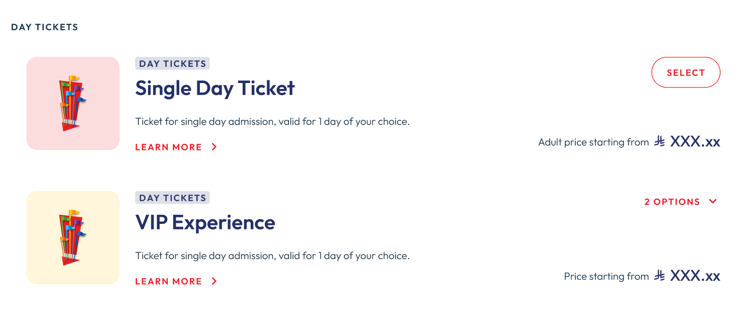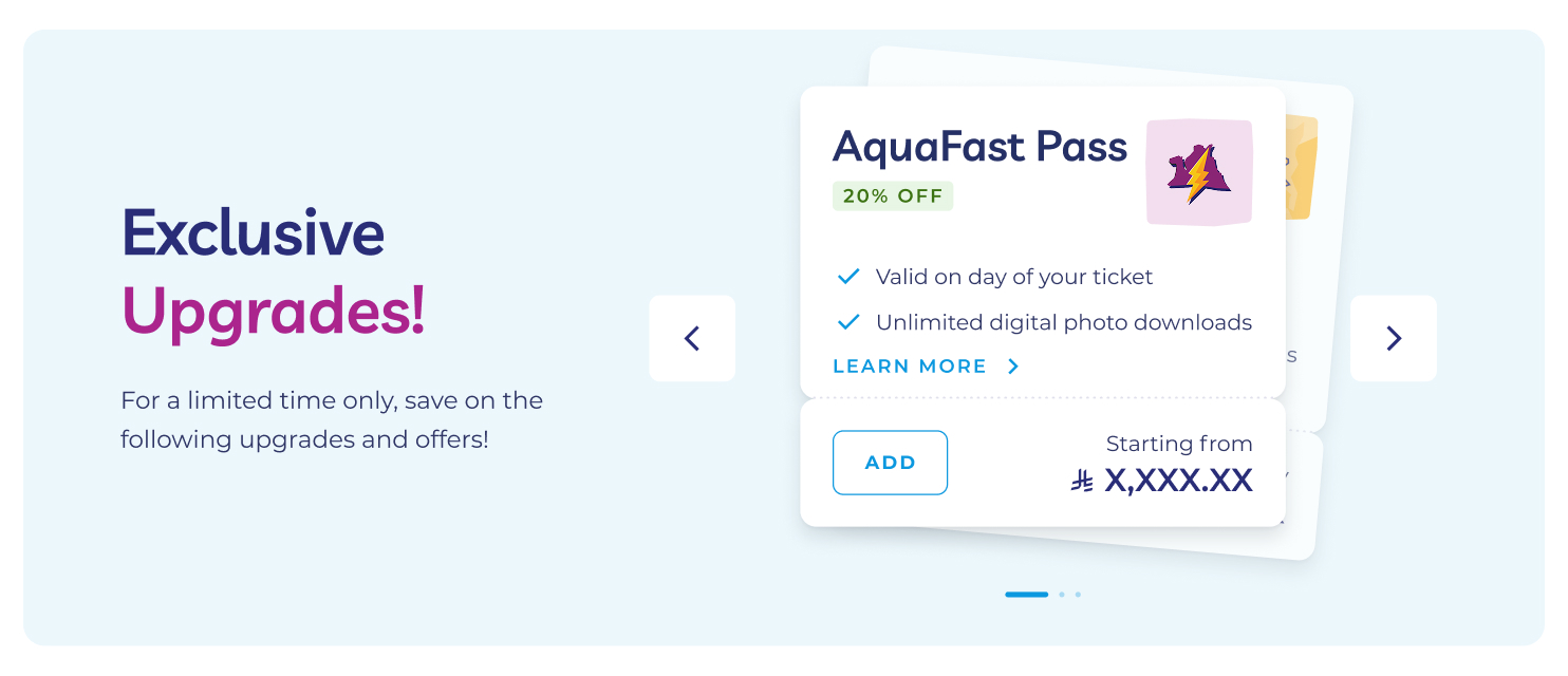 - Enable users to purchase a wide range of ticket types, packages, add-ons, and park-specific experiences