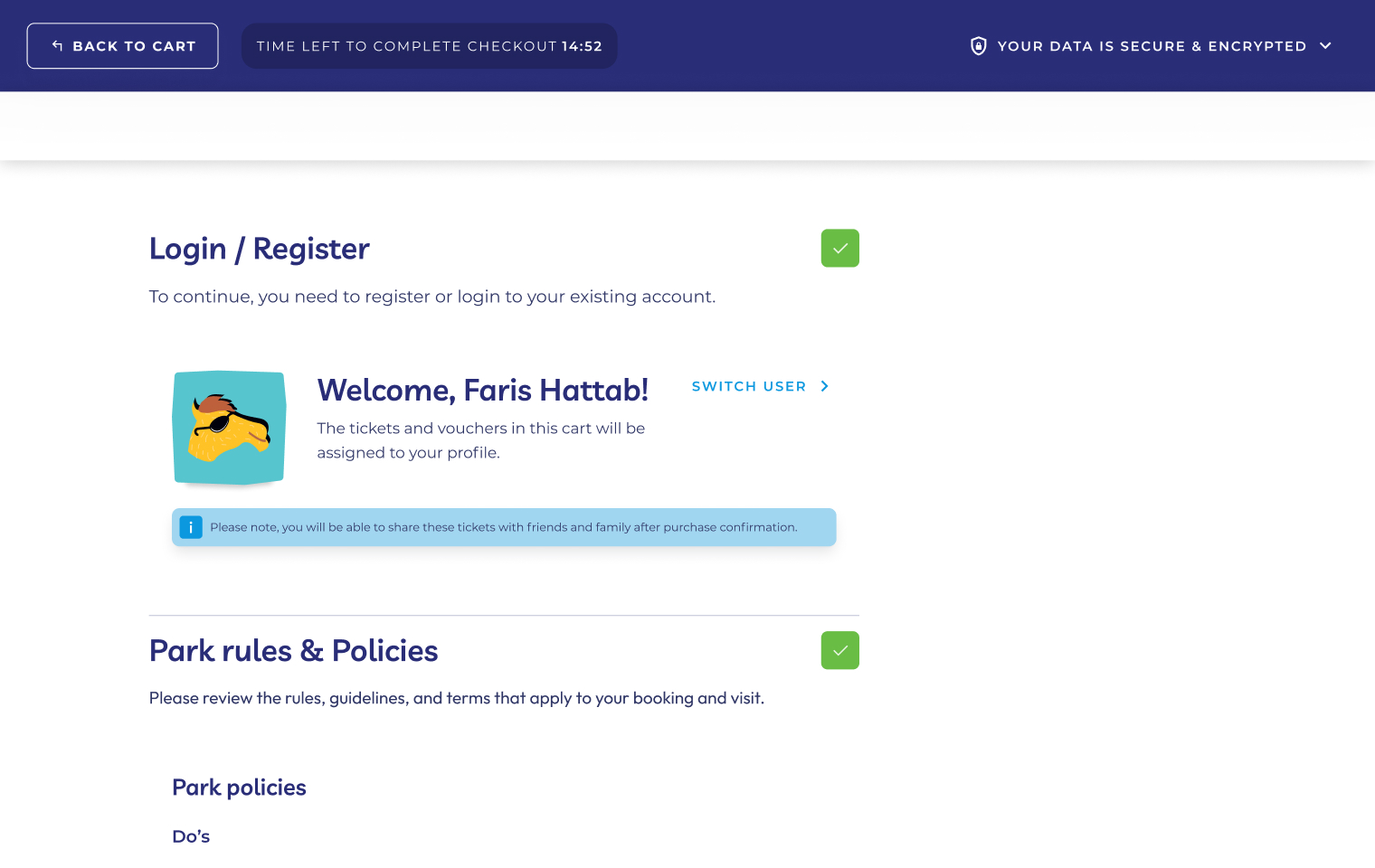 Both Six Flags and Aquarabia booking journeys were developed in parallel, requiring a shared system that could support different offerings.